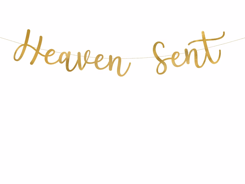Sewn banner Heaven Sent made of mirror gold paper, size: height approx. 14.5 cm, length approx. 85 cm.