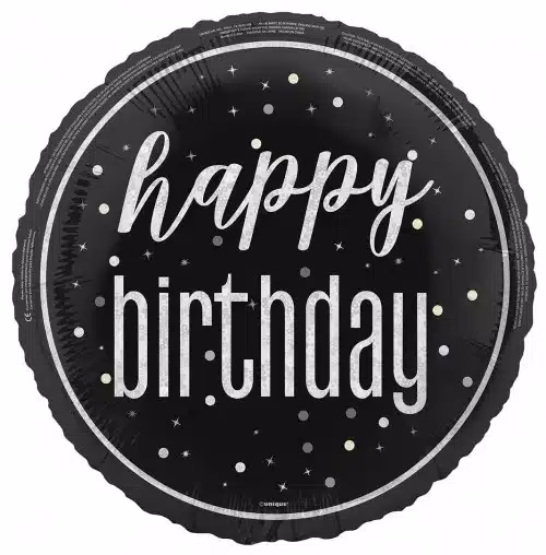 Black/Silver Glitz Happy Birthday foil balloon