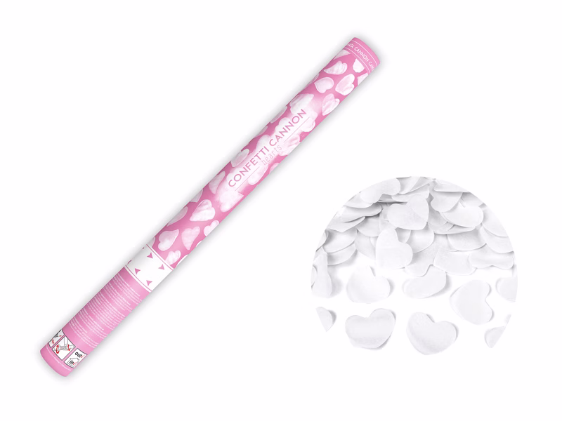 Confetti cannon with hearts, white, 60cm