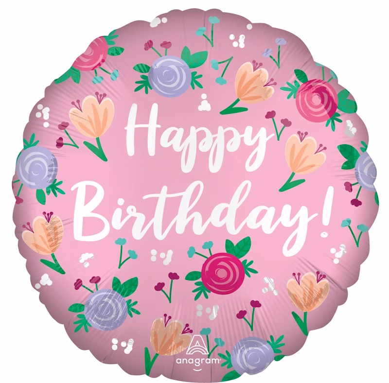 Happy Birthday Satin Flowers Foil Balloon – 4593701 –
